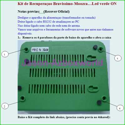 Azbox Bravíssimo Moozca morto, com led verde on e sem imagem. Lembre-se de que precisa deconhecimentos básicos em eletronica para realizar este procedimento. Qualquer procedimento faça por sua conta e risco.